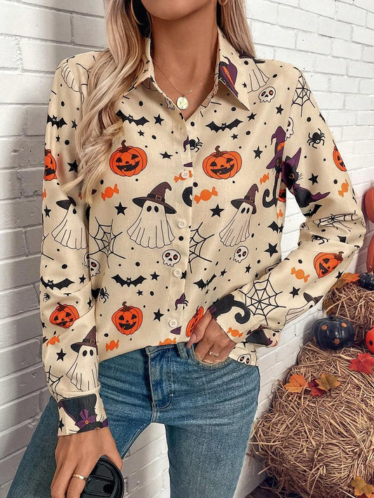 Round Neck Short Sleeve Ghost Graphic T-Shirt