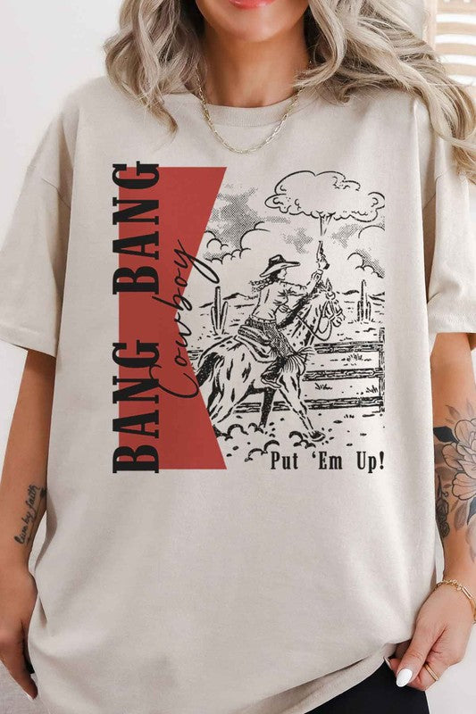 BANG BANG COWBOY PUT EM UP OVERSIZED GRAPHIC TEE