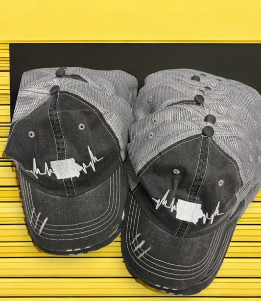 Sate of Iowa Heartbeat Embroidered Trucker Hat