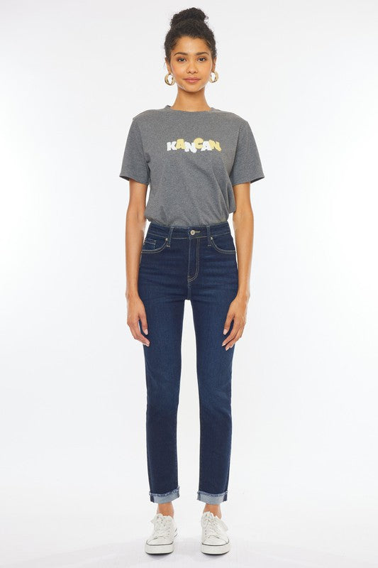Kancan Full Size Cat's Whiskers Raw Hem High Waist Jeans
