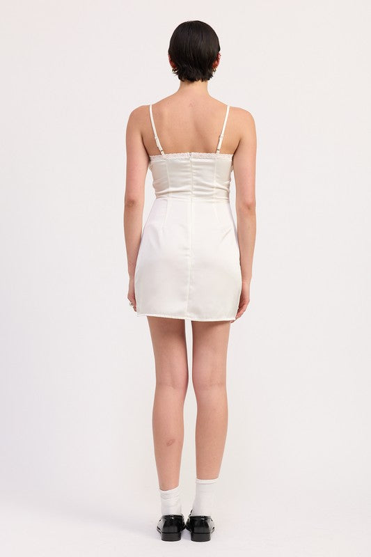 Lace Detail Square Neck Cap Sleeve Mini Dress