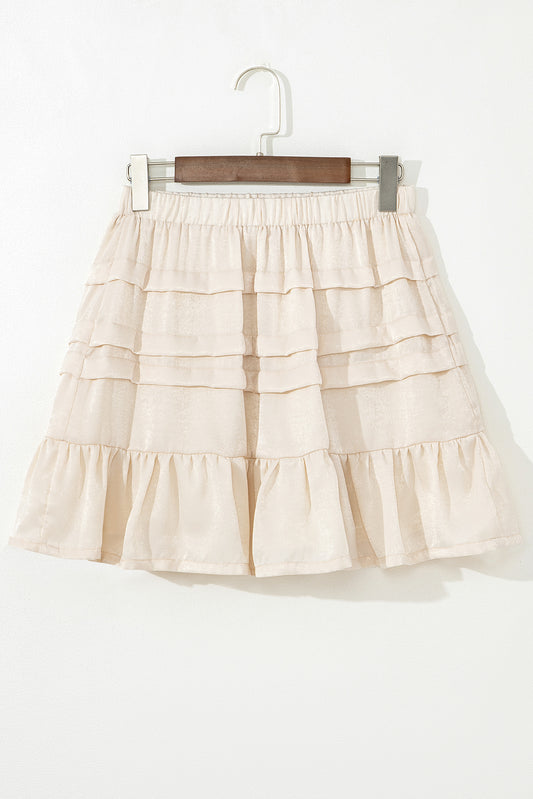 Beige Tiered Ruffled Hemline Elastic Waist Mini Skirt